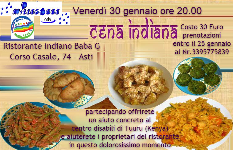 Venerdì 30 gennaio alle ore 20:00 presso il ristorante indiano Baba G in Corso casale n.74 (Asti).